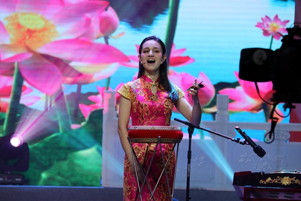 留学生在特聘教师王文磊的带领下受邀参加演出活动,并在晚会上表演了京东大鼓《送女上大学》节目。