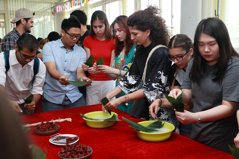 (记者 郝静秋 摄影 任永华)5月26日,南开园弥漫着清新的粽香。来自美国、意大利、西班牙、俄罗斯、芬兰、泰国、土耳其、哈萨克斯坦等20个国家的近百名“洋学生”,聚集在老司机论坛