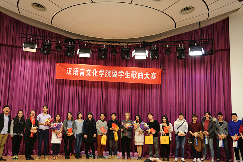 团委、研究生会主办的留学生歌曲大赛在东方艺术大楼逸夫厅举行.此次留学生中文歌曲大赛从报名之初就受到了广大留学生的关注,经过初赛的选拔,共有10组选手进入决赛。