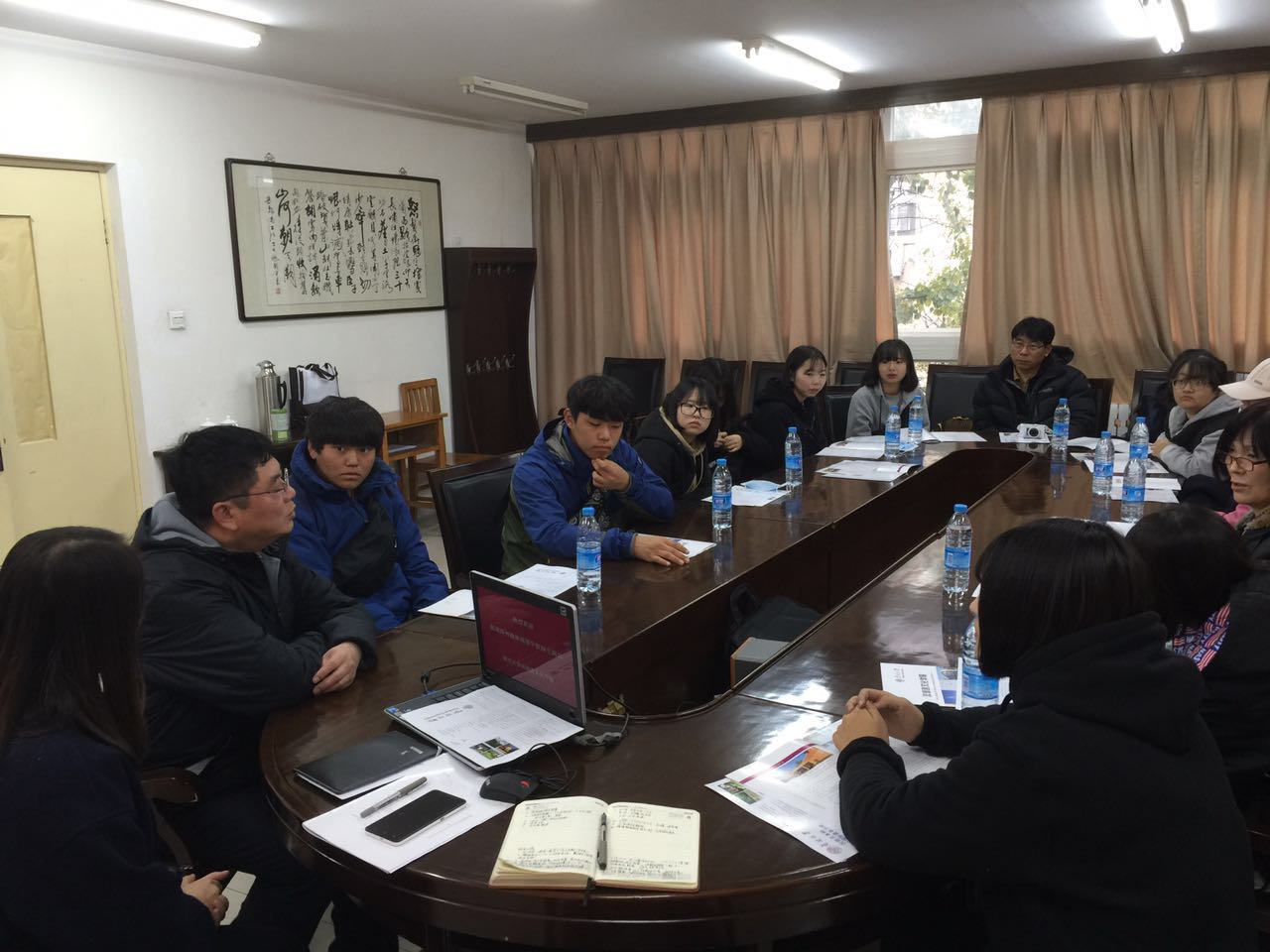 来自韩国济州翰林高中的留学生进行座谈,了解学生们的学习、生活和就业情况。