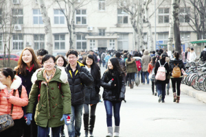 南大二主楼前学生们赶去上课