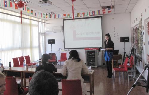 为在校留学生举办“说汉语大赛”,来自德国、俄罗斯、日本、韩国、埃及、哈萨克斯坦等16个国家的39位留学生参加比赛。他们或低吟浅唱,或慷慨激昂,或“单枪匹马”,或组合“披挂”。