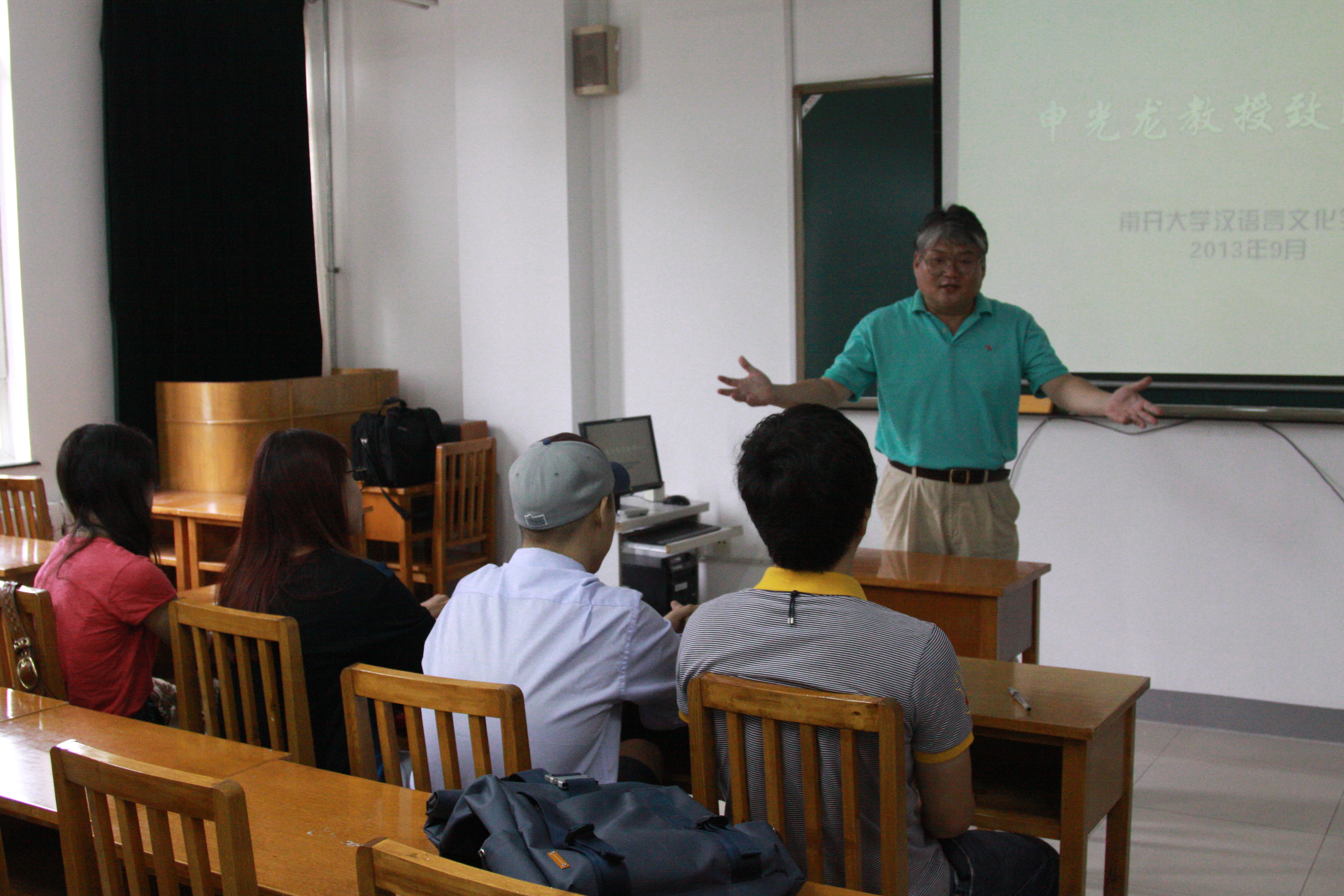 受聘仪式之始,王立新院长首先致辞,在双边经济迅速发展的今天,掌握在商务谈判中与中国人交流的知识是十分必要的,这也是学院为留学生开设本门课程的目的所在,院长鼓励更多的同学来学习这门课程。申光龙教授则介绍了本门课程的重要性以及自己对课程内容的一些理解,并将在授课过程中为同学们提供一些参考资料。申教授的解说无疑给留学生同学吃了一颗定心丸。