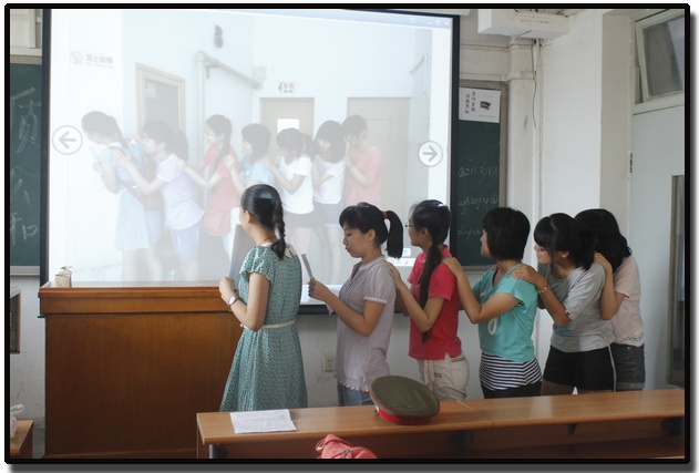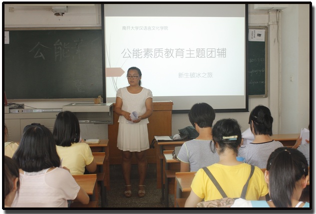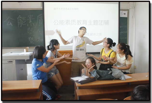 在第一课“新生破冰之旅”中,同学们在辅导员的引领下,先后进行了“南开知道”、“同心圆”、“认识你自己”、“家庭成员对对碰”等素拓活动,在活动中,他们彼此交换姓名,一起解开混乱的同心结,回答关于南开的趣味题目,并且组成四组家庭,定立家长、家规,并上台向全班展示。这些丰富而有趣的活动让同学们立刻熟悉了彼此,活动中欢笑连连。