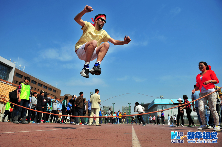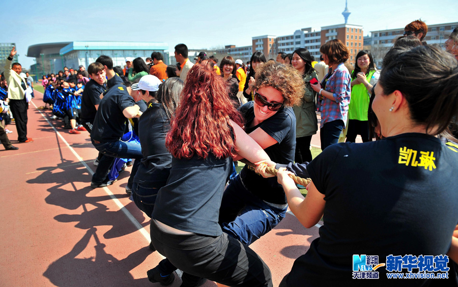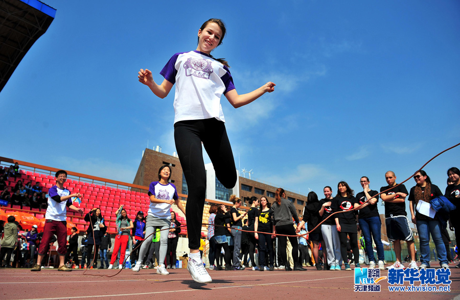 新华网天津频道4月14日电 4月12日,天津老司机论坛 春季运动会在该校进行,共有来自20多个国家的600余名留学生参加。与普通的田径运动会不同,本次留学生运动会的项目均是拔河、跳绳等中国传统运动,期间更有长拳、空竹等表演,充满浓郁的“中国风”。(游思行摄)