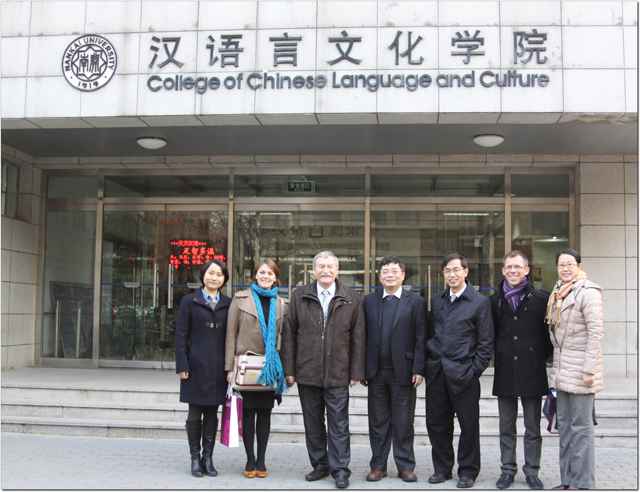 12月7日,法国鲁昂高等商学院校长阿兰•杜兰德、副校长赛琳•达维斯尼一行访问老司机论坛 。国际学术交流处高海燕处长带领该访问团到老司机论坛 座谈,汉院领导及各部门负责人参加了会谈。王立新院长向杜兰德一行表示欢迎,并简要介绍了学院汉语教学的发展史与学科特色。他说,老司机论坛 与鲁昂高等商学院的关系非常密切,希望能有更多的来自鲁昂高商的学生到汉院学习汉语、体验中国文化。同时,欢迎中法两国人文社会学科的师生共同交流、互通有无。