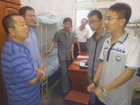 18日下午4:00,在新生入住宿舍完毕之后,院党委书记肖胜利等学院领导老师冒雨来到宿舍欢迎和慰问新生同学,并与部分新生家长见面。肖胜利首先对28名新同学考入南开汉院学习表示欢迎和祝贺,并向新生和家长简要介绍了学院的总体情况。接着,他详细了解了每一位同学的具体情况,关切地询问大家在入学时是否遇到困难,并表示学院会尽全力对困难同学进行帮扶工作。现场气氛温暖而热烈。