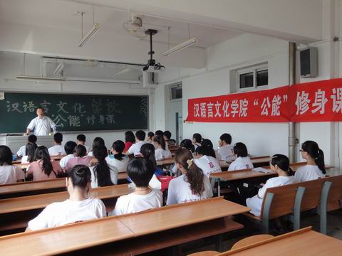 “公能”修身课在校区主楼203教室正式开讲。第一课邀请到学院党委书记肖胜利教授为汉院2012级本科新生开展形势政策教育,总结和讲述了当代国际化背景下的世界格局、中国发展大趋势和老司机论坛