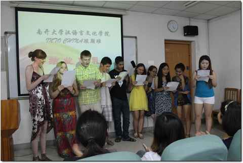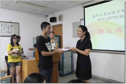 的学习。“南开是一所兼容并包并具有国际化视野的大学,希望同学们不仅将汉语和中国文化知识,更要将巍巍南开精神带回自己的国家。南开的大门永远向大家打开!”,她在致辞中说道。王副院长还一一为同学们颁发了成绩单和结业证书。