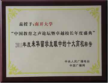 本院讯2011年12月29日,首届“中国教育之声论坛暨卓越校长年度盛典”在中国科技会堂隆重举行,此次盛典是由中央人民广播电台•中国广播网主办的。会上宣布了“来华留学生眼中的十大高校”榜单,我校为十大高校之一。 全国教育界专家、学者以及百余所大、中、小学校长近300人齐聚一堂,以“改革•创新•公平”为主题,共同探索中国教育事业的可持续发展之路。中国教育之声论坛暨卓越校长年度盛典在网友票选和专家评审之下,评选出“来华留学生眼中的十大高校”。