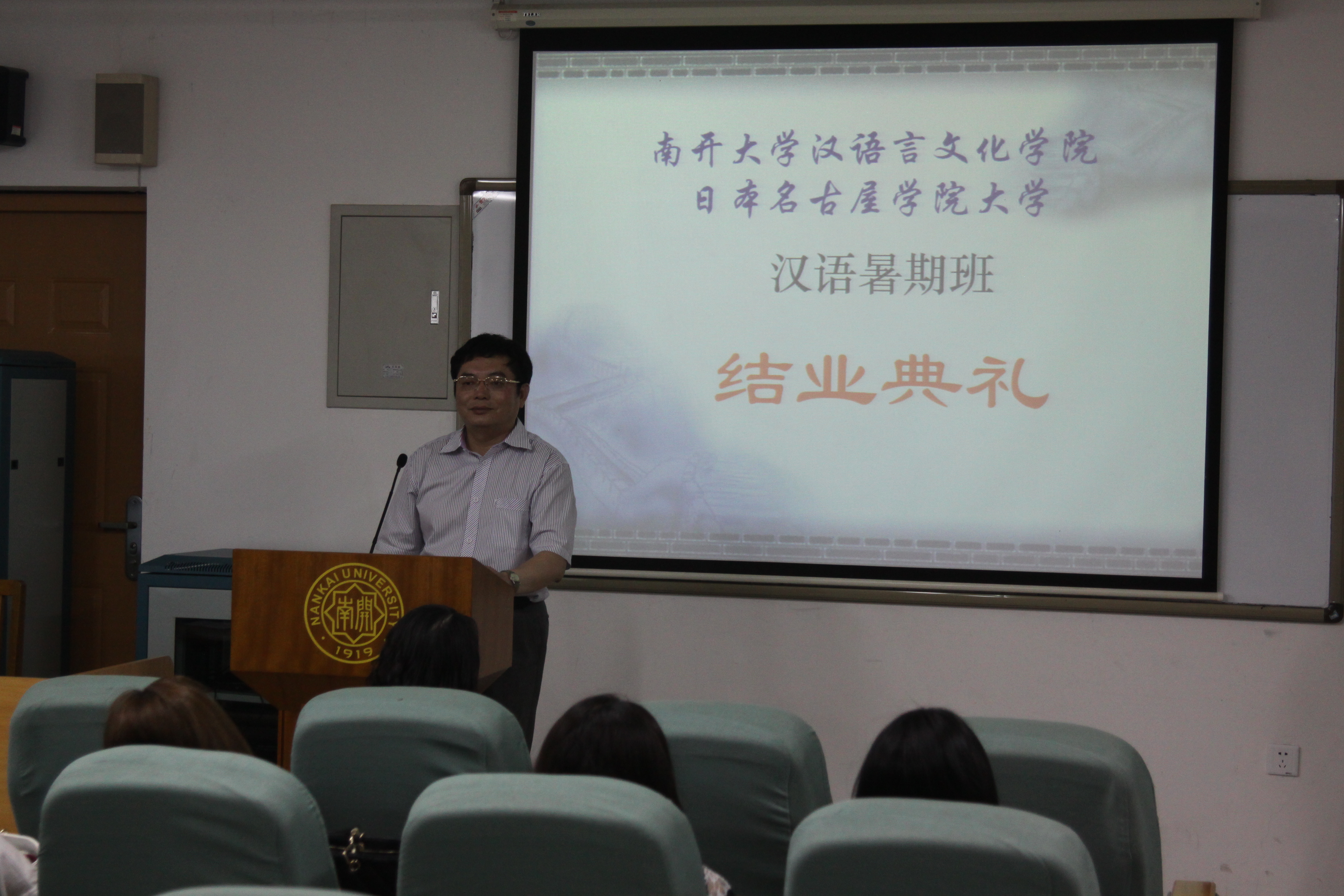 日本名古屋学院大学汉语短期班结业典礼在南楼101举行。院长王立新、副院长刘春兰、名古屋学院大学领队樋口勇夫老师及学院短期班任课教师出席了结业典礼。