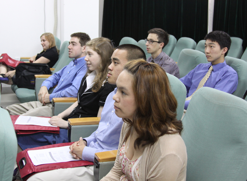 迎来了美国马里兰大学暑期项目班的七名留学生和一名领队教师。学院党委书记肖胜利教授参加了开学典礼并致欢迎辞,随后马里兰大学的陈凤凰教授发言,她引用了《荀子·儒效》中的名言:“不闻不若闻之,闻之不若见之,见之不若知之,知之不若行之,学至於行之而止矣。行之,明也。”陈教授希望留学生们能全身心地投入到汉语学习的课堂活动中,同时,在中国这个真实的语言环境中体验学习汉语的乐趣。学院为马里兰大学三周的暑期班精心安排了汉语语言课程及传统文化课程,包括太极拳、绘画、书法、剪纸、民族乐器及中医等。相信来自马里兰的留学生们通过在南开汉院的各种课程体验,一定会实现他们“入宝山绝不空手回”的决心。我们一起为留学生们加油!