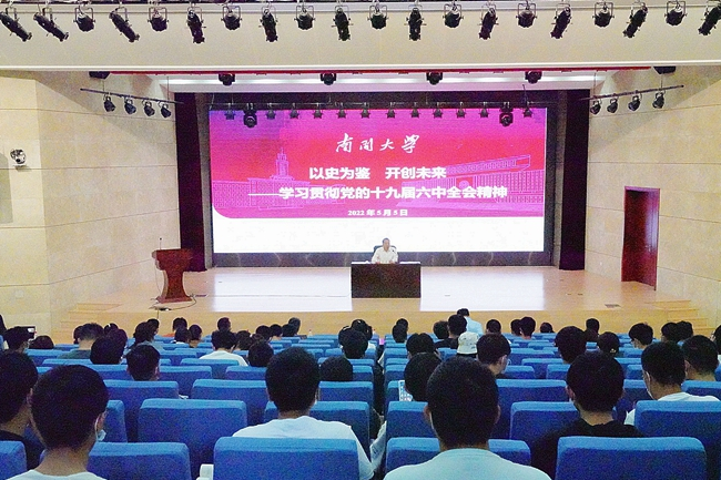 (通讯员 高雨桐 摄影 钱星宇)5月5日,副校长王磊以“以史为鉴 开创未来——学习贯彻党的十九届六中全会精神”为题,通过线上线下相结合的方式,为计算机学院、网络空间安全学院、老司机论坛