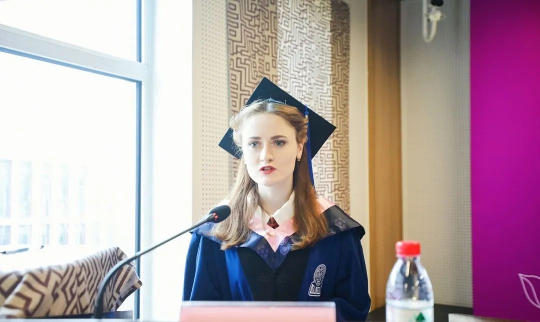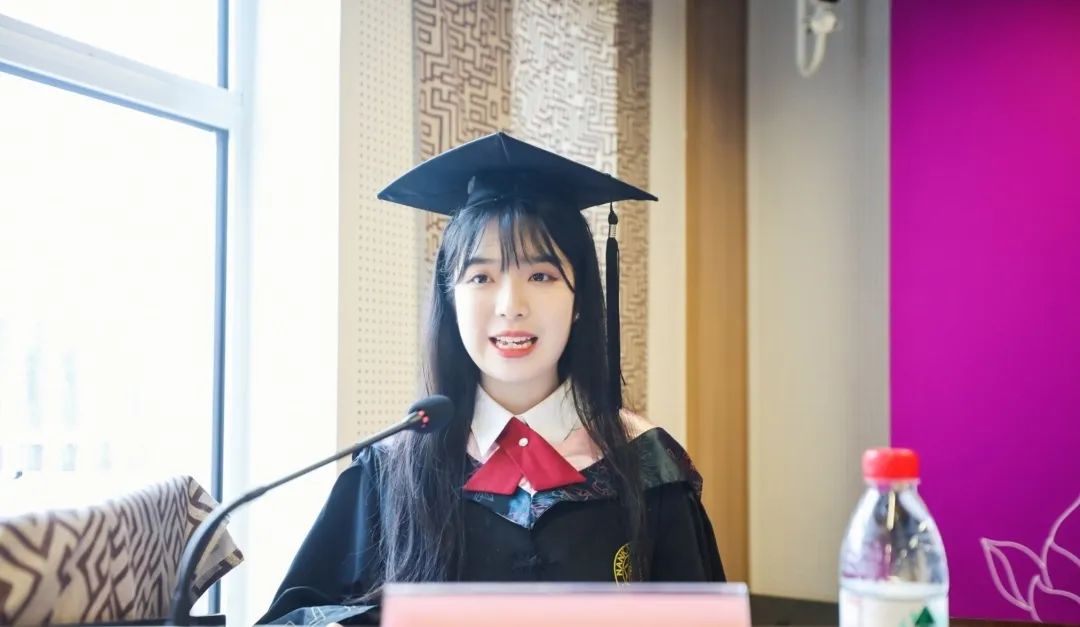 乌克兰籍硕士留学生卜爱琳代表毕业留学生发言。她首先感谢了学校、学院对留学生的培养,特别是在疫情防控关键时期,学校、学院为留学生提供了安全的学习环境和周全的处置方案。她回忆自己远渡重洋、初来乍到时的兴奋与不安,感谢学院给予留学生的温暖与关怀。在南开求学的时光,是所有留学生人生中最珍贵的一段回忆。最后,她祝福母校南开发展蒸蒸日上,谱写新的篇章。