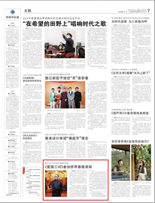 校友会的各位老师一起参加侨界春晚的录制,又一次受到南开精神和‘爱国三问’精神的洗礼。希望这种跨界融合的呈现方式能够带给大家全新的艺术感受。”