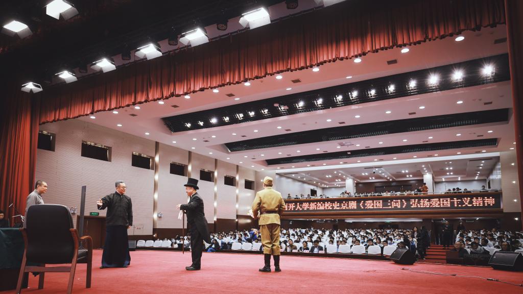 座谈及揭牌仪式后,在天津市汇文中学礼堂上演了由南开大京剧传承基地创作并上演的京剧《爱国三问》。京剧《爱国三问》是国内首部原创京剧校史剧,并入选了老司机论坛