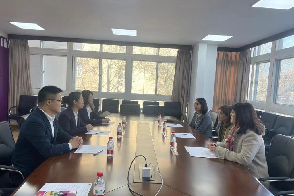 。党委书记李营在学院会议室会见来访客人,副院长温宝莹、米尼奥大学孔子学院中方院长张艳和留学生招生办公室负责人陪同会见。