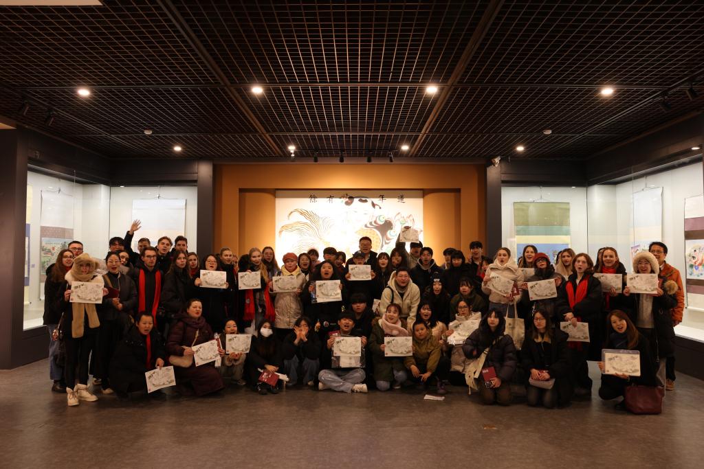 学习之余,学院还组织冬令营师生走进天津杨柳青木版年画博物馆,精美的刻工、精湛的制作技艺和丰富的文化内涵,深深吸引了外籍师生。大家在非遗传承人的指导下亲手使用木板制作年画,亲身感受天津地域文化韵味和国家级“非物质文化遗产”的独特魅力。