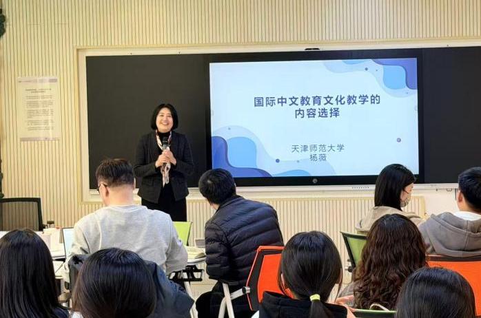 杨薇院长以《长安的荔枝》这一作品中的名句“就算失败,我也想知道,我会倒在离终点多远的地方”为讲座开场,围绕高雅文化与大众文化的转化展开分析,以京剧、二人转、相声等经典文化形式为例,指出大众文化与高雅文化之间的动态转化关系,强调了在中国文化教学实践中平衡古代与现代内容的重要性,为海外文化教学内容的选择与设计提供了全新思路。